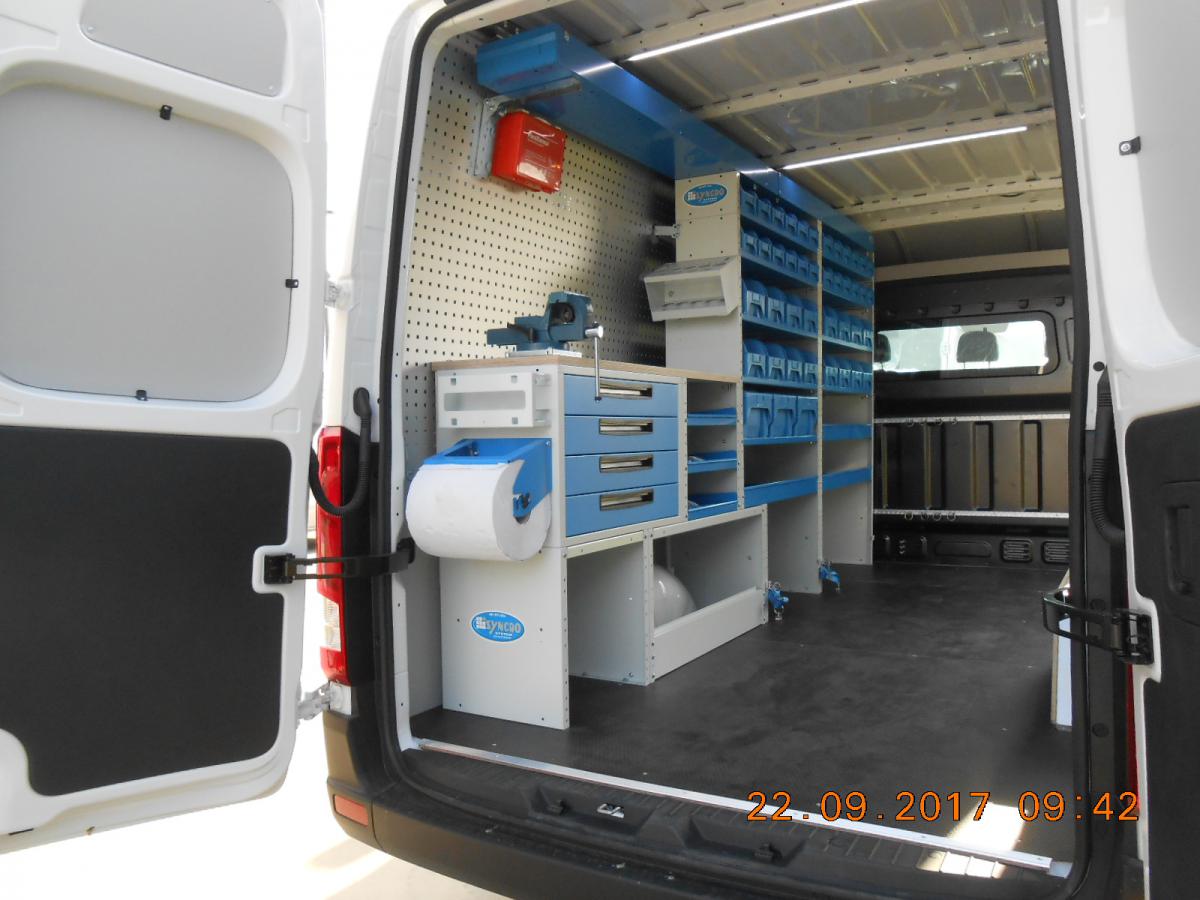 Aménagement camionnette avec banc de travail et étau